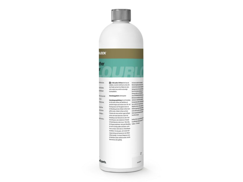 Návod k použití: Před použitím protřepejte! Před použitím změkčovače na starou kůži povrch důkladně očistěte, odmastěte a nechte jej uschnout. Opravy prasklin a zlomů tekutou kůží je nutné provést před ošetřením změkčovačem. Naneste změkčovač na houbu nebo měkký hadřík a kůži jím otřete. Ideální ošetření je z rubu kůže. Po aplikaci nechte kůži alespoň 24 hodin odpočinout při pokojové teplotě. V případě potřeby postup opakujte. Po každém ošetření kůži jemně válcujte a hnětejte, aby se uvolnila vlákna. Neprovádějte více než 3 ošetření. Pro kompletní, velmi suchý interiér vozidla je potřeba maximálně jeden litr změkčovače kůže. Před barvením je nutné povrch znovu odmastit.